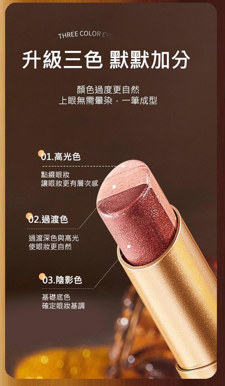 20分鐘前【限時特惠70%!買1送1,支持貨到付款】手殘黨救星,一抹成形!「三色眼影棒」高光+陰影+過渡色//台灣獨家熱賣 - 【推薦套餐 買一送一】-NT$ 899