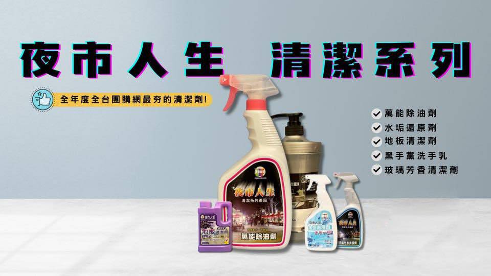 7分鐘前【夜市人生清潔劑】-(夜市人生水垢還原劑)適合各處殘留水垢,只清水垢,不傷手/不刺鼻,只要有水垢的地方通通清的起來!【夜市人生萬能除油劑】廚房救星!❗油污秒殺❗ 噴後10秒擦淨|網友狂推|頑固油漬剋星|輕鬆分解重油污 - 台灣製【夜市人生萬能除油劑】好用不傷手 買三送三 6組分享裝NT$1380(單瓶NT$230)