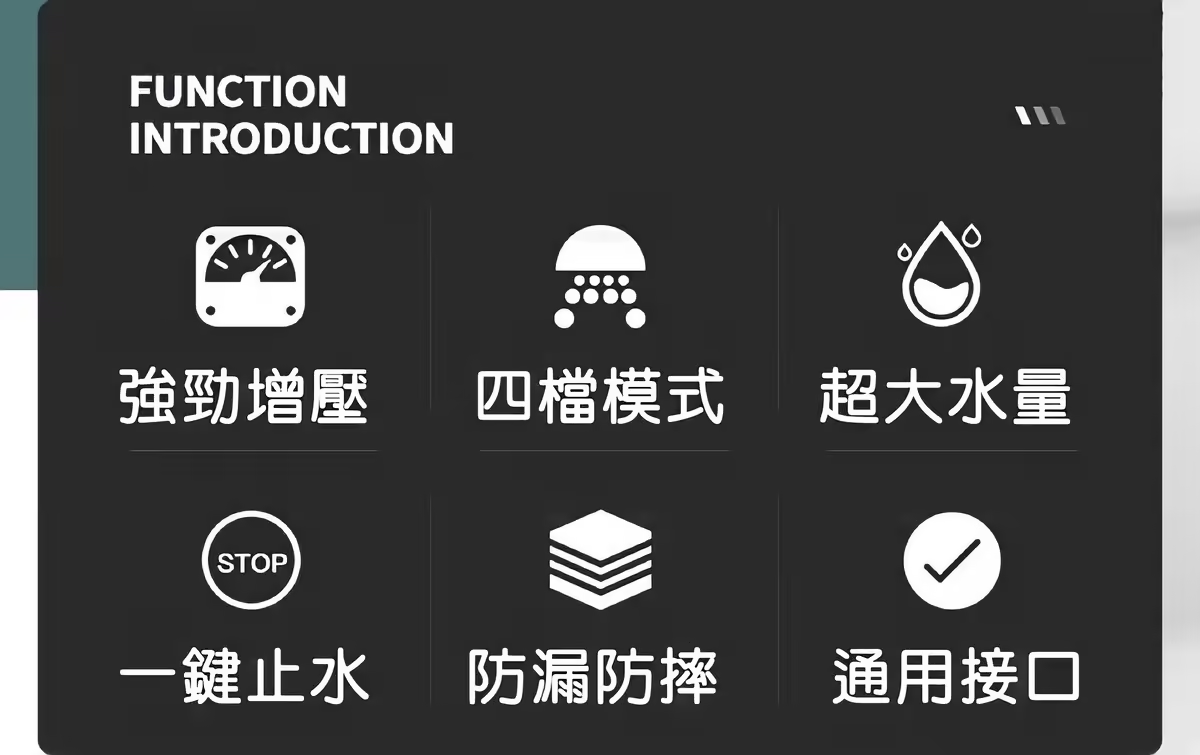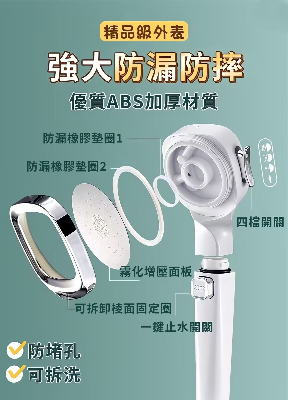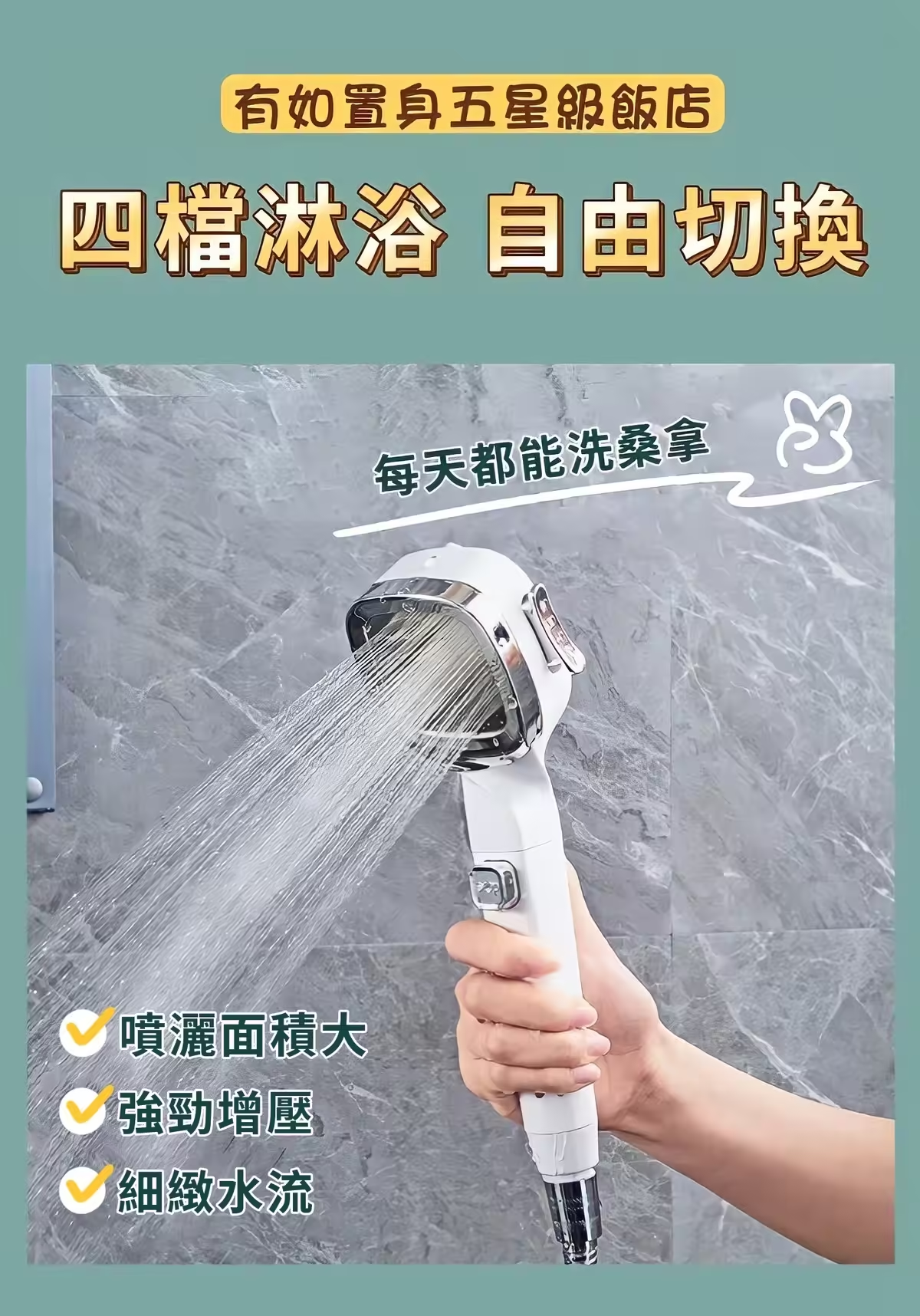 7分鐘前四檔調節【白武士增壓蓮蓬頭】會馬殺雞的蓮蓬頭 沖掉一天的疲憊 - 活動體驗【1入組】699+運費80 -NT$779