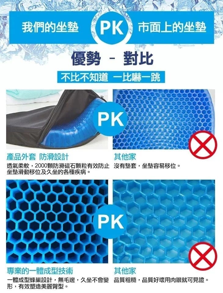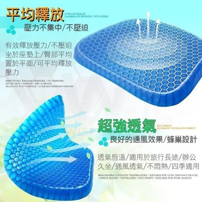 半小時前【買一送一】涼爽透氣蜂巢冷凝膠坐墊 - 【超夯活動】三入組NT$1399 每件都送坐墊布套