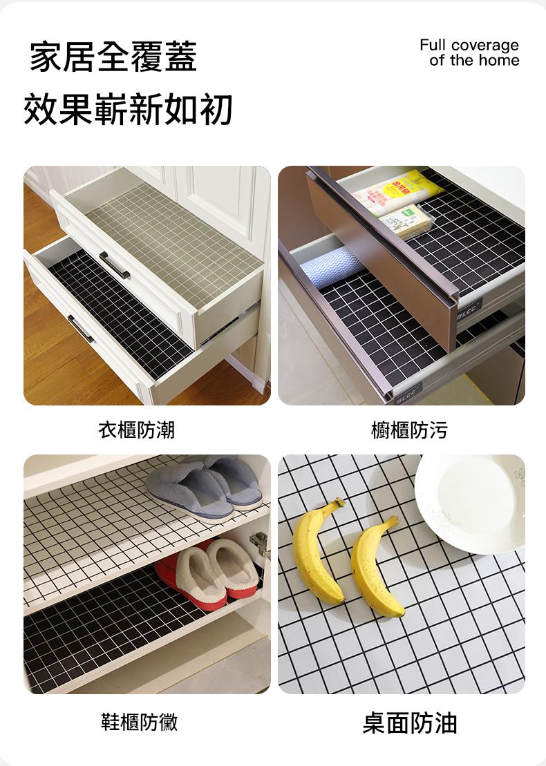 7分鐘前抽屜墊衣櫃墊布家用廚房鋪紙櫥櫃墊紙防水防潮櫃子鞋櫃加厚防潮墊 - 5入組 NT$599【最多客戶選擇】