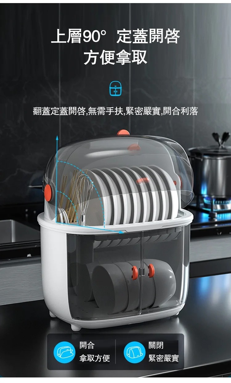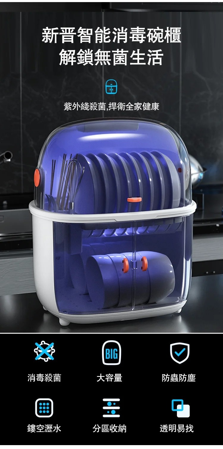 2分鐘前智能家用碗碟收納瀝水紫外線消毒密封雙層碗櫃 - 二入組NT$1798 NT$ 1798