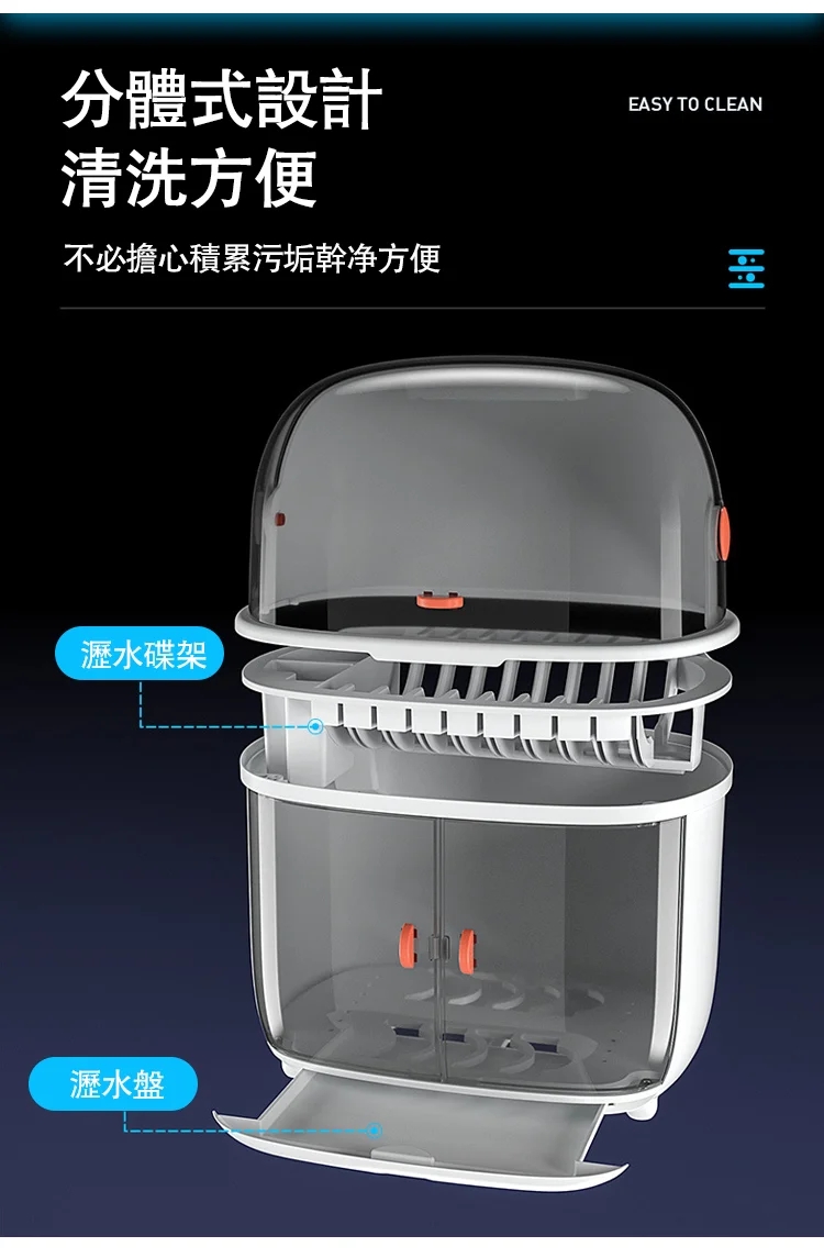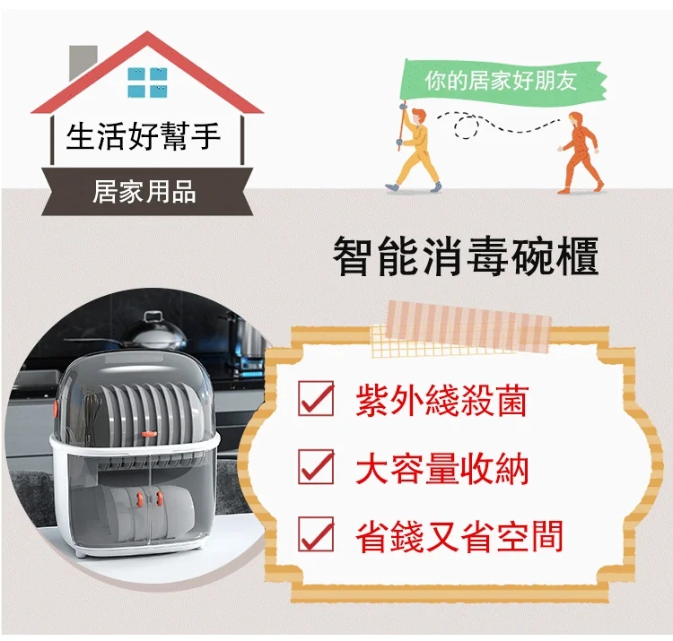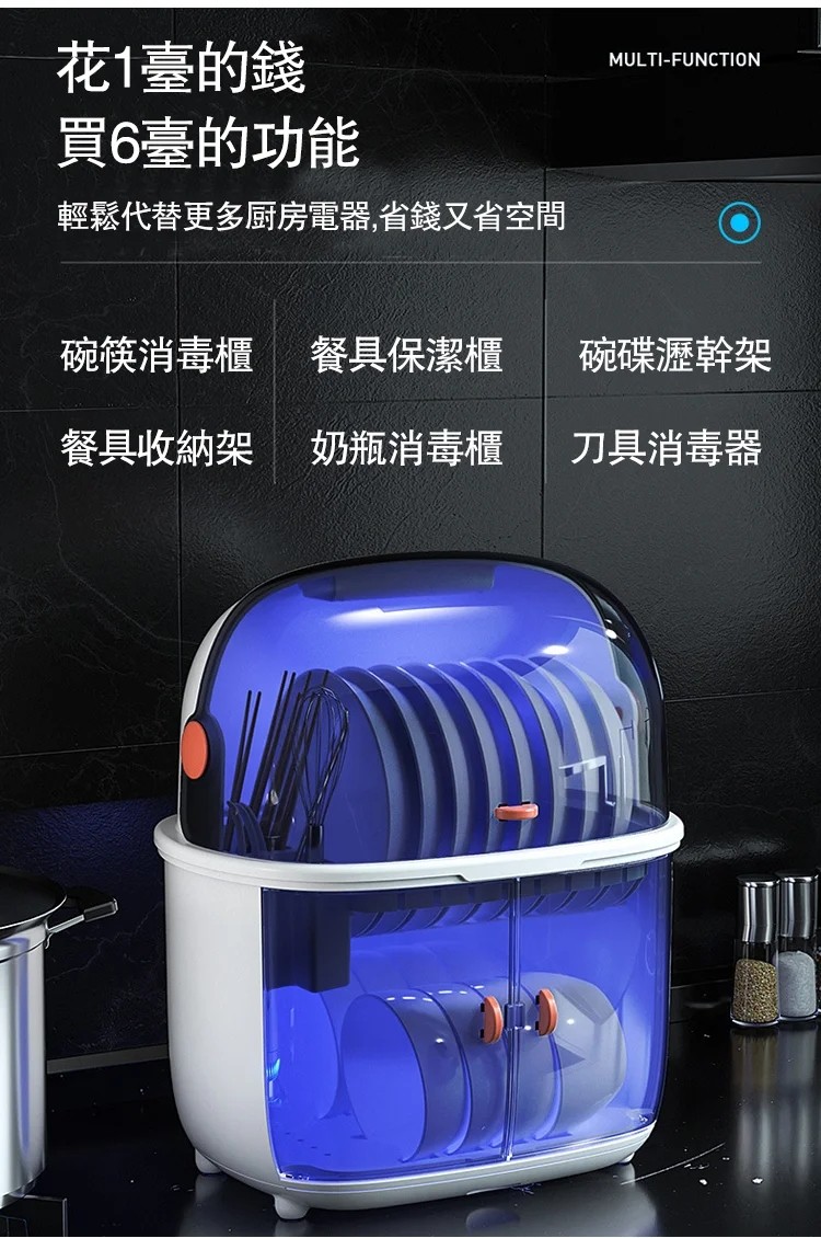 半小時前智能家用碗碟收納瀝水紫外線消毒密封雙層碗櫃 - 一入組NT$1398 NT$ 1398