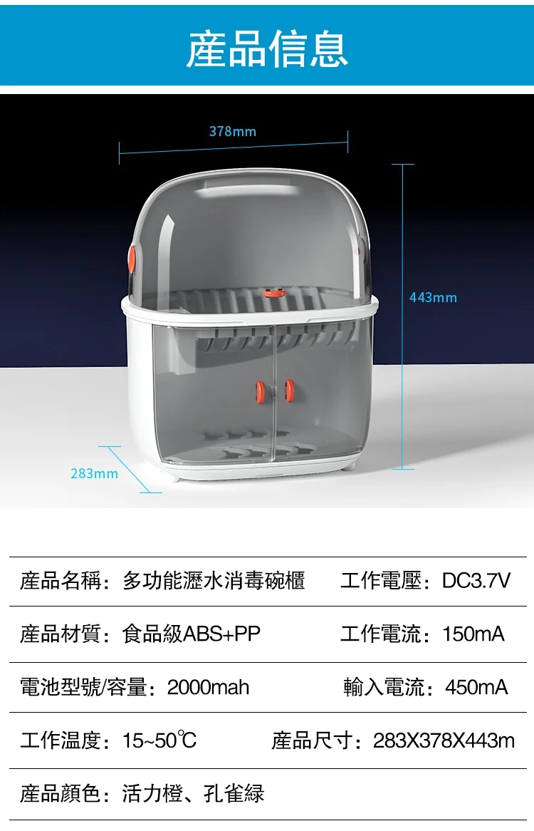 12分鐘前智能家用碗碟收納瀝水紫外線消毒密封雙層碗櫃 - 一入組NT$1398 NT$ 1398