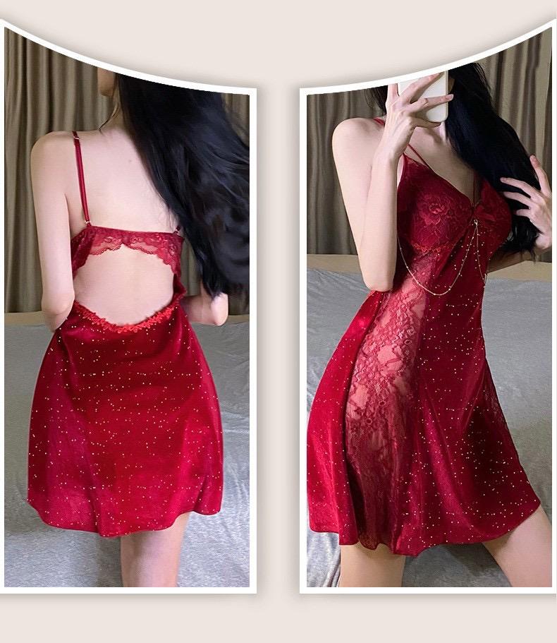 20分鐘前【輕奢高定版蕾絲睡裙】蕾絲深V純欲風!若隱若現,撥動男人的心弦!冰絲面料、自帶胸墊! - 【新品秒殺 】一入組-NT$ 998