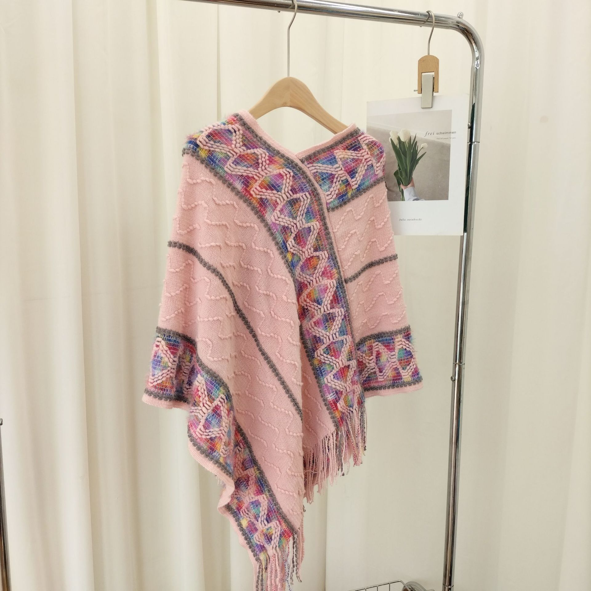 25分鐘前流蘇套頭針織披肩,民族風披肩波浪彩色百搭款 - 最划算!【多款式一起入!】3入組-NT$1590