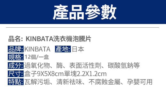 7分鐘前【日本進口】去污清潔泡騰片,適合清潔洗衣機水槽馬桶多種用途!無效全額退款, 固保三年! - 日本KINBATA洗衣機泡騰片 入6組60個 NT$1299