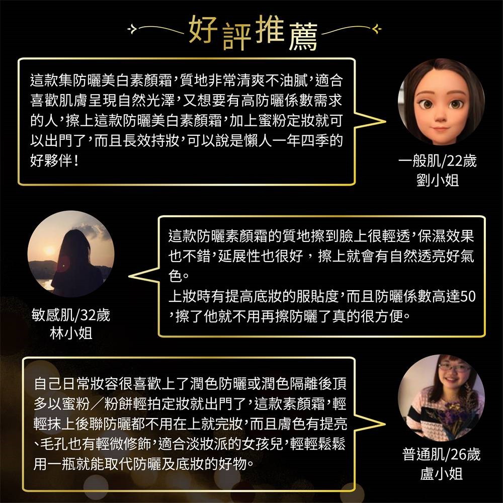 7分鐘前【黃金蠶絲防曬美白素顏霜】榮登素顏界的天花板!脫口罩後必收「媽生霜」登場,化妝保養兼防曬1瓶hold全場!!美白、淡斑、防曬,三效合一,夏日必備這一瓶就夠了! - 【最優惠】買三送五 NT$1399