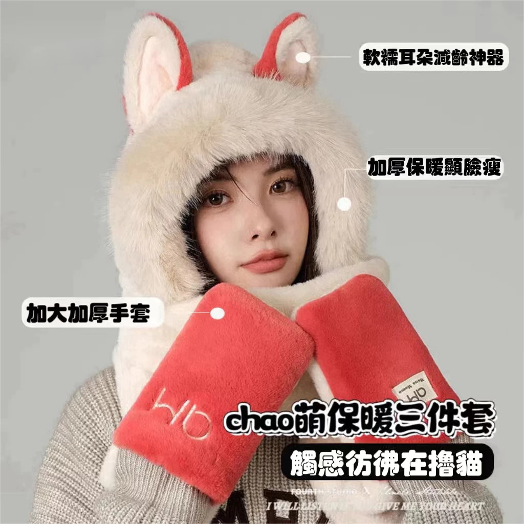 20分鐘前冬季爆款#火狐狸圍巾 帽子一體 保暖 圍脖 日韓 可愛 女生 百搭 情人節 春節 禮物 生日禮物 交換禮物 - 【狂殺特賣】團購三入組$1399