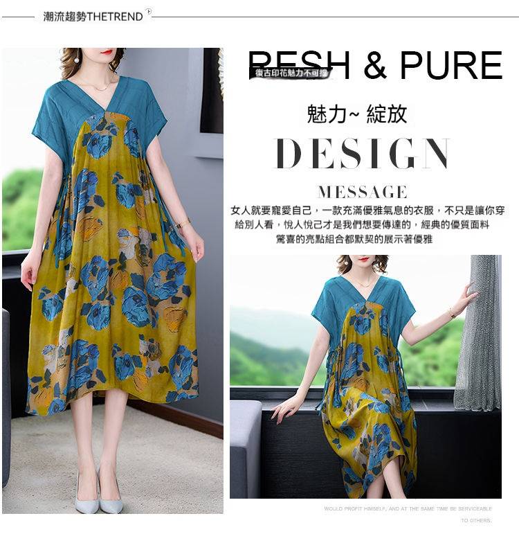 2分鐘前網紅爆款夏季新款寬鬆復古印花高端優雅連衣裙 - 【超值套餐】任選3件 僅需NT$1298