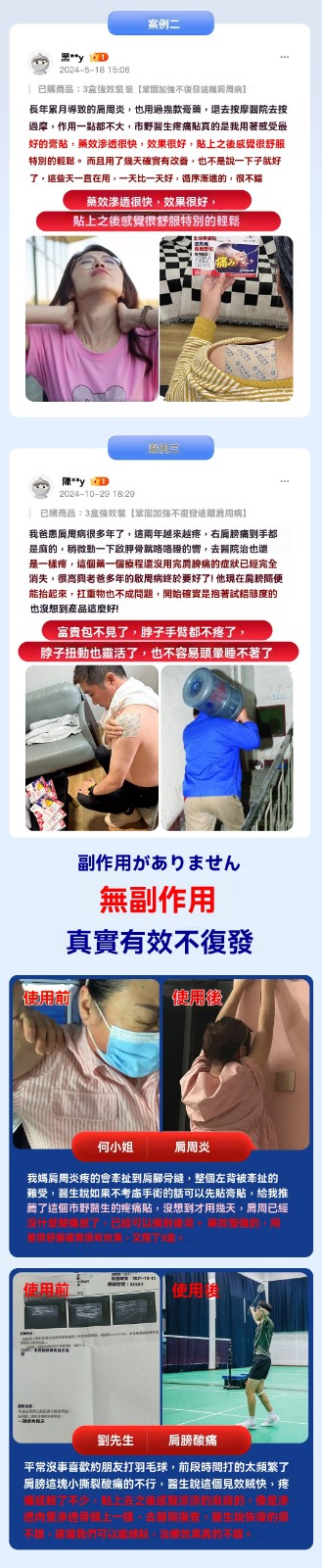 25分鐘前市野醫生緩解關節疼痛肩周貼,多種原材合理搭配製成,柔軟貼合,長時貼敷、深入肌膚呵護,早用早好。 - 【二療程 治療腿疼肩胛疼】買二送三-NT$1200