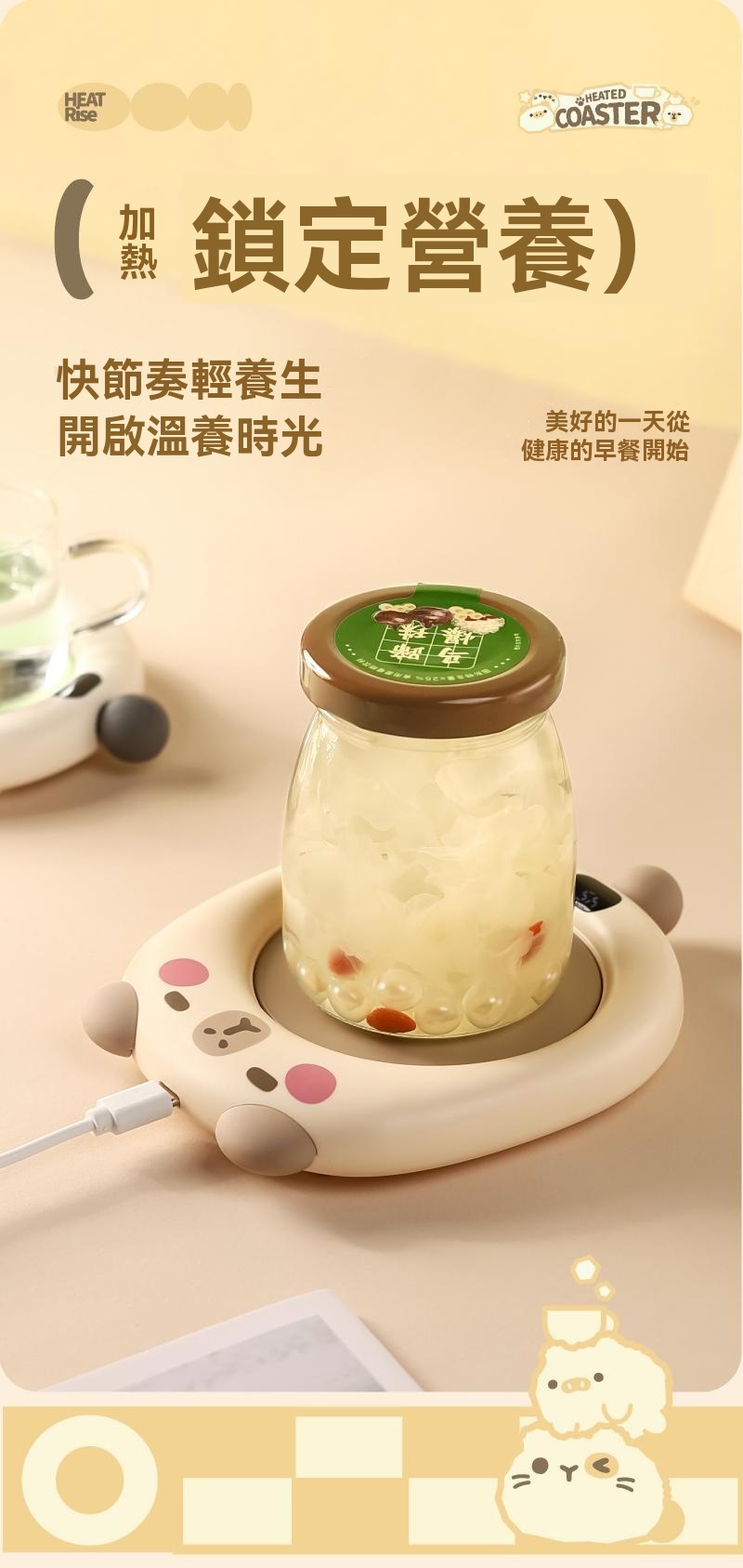4分鐘前可愛智能恆溫usb加熱杯墊三擋可調溫 辦公室家用自動保溫暖杯 - 新品嘗鮮!1入組-NT$998
