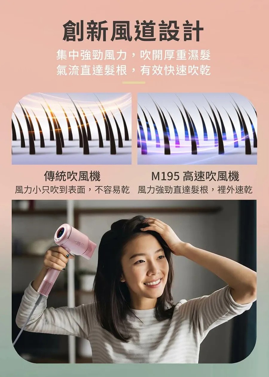 7分鐘前M195 負離子恆溫高速吹風機 乾髮護髮,一次搞定 - 優惠價一入組NT$1398