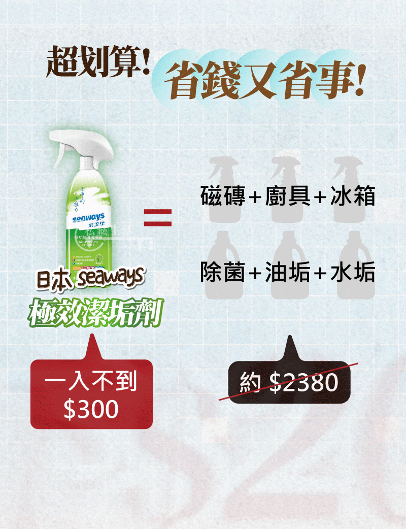 20分鐘前全屋煥然一新日本瘋搶除垢劑【Seaways極效潔垢劑】極效去汙X乾淨透亮 - 極效潔垢劑【2入】再享免運!