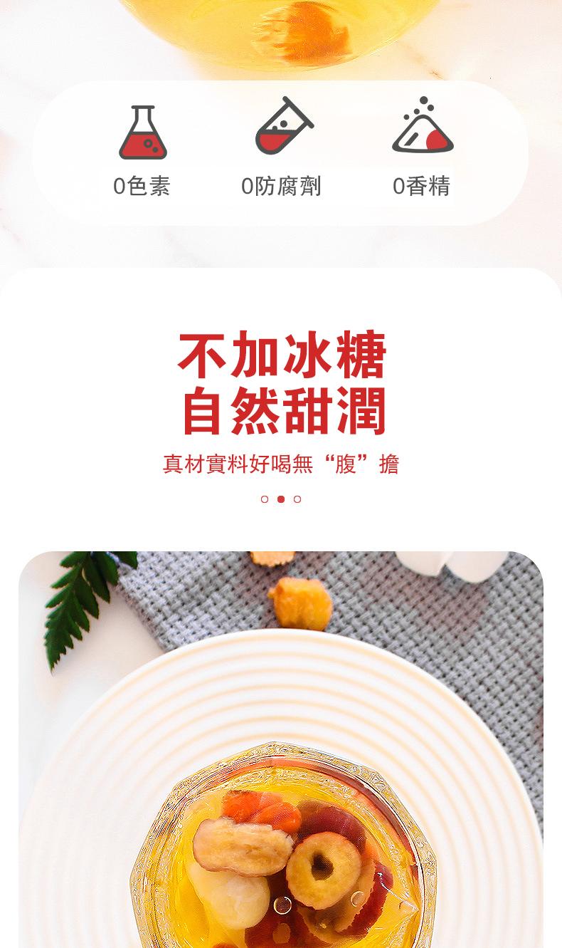 4分鐘前現在下訂 贈品新升級↑[精美馬克杯]【熱賣茶葉】桂圓枸杞紅棗茶 嚴選台灣在地元氣三寶 0色素0添加0香精 補心補腎補血3合1 陪你做素顏美人 ~ - 【送精美馬克杯】5組(250小包) 低至6/小包-NT$ 1698