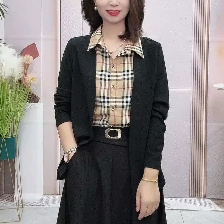 4分鐘前2022年新款秋裝拼接假兩件套開衫長袖拼接純色翻領氣質流行襯衫 - 超值套餐【四入組】NT$1099